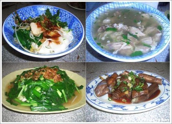 叫了乾板條、豬頭肉湯、燙韭菜和茄子,價錢不貴但份量卻多到嚇人,除了板條很好吃外,豬頭肉湯和燙青菜更是份量十足,媽媽直稱讚湯頭很好喝、板條好吃,這一餐我們吃的很撐。