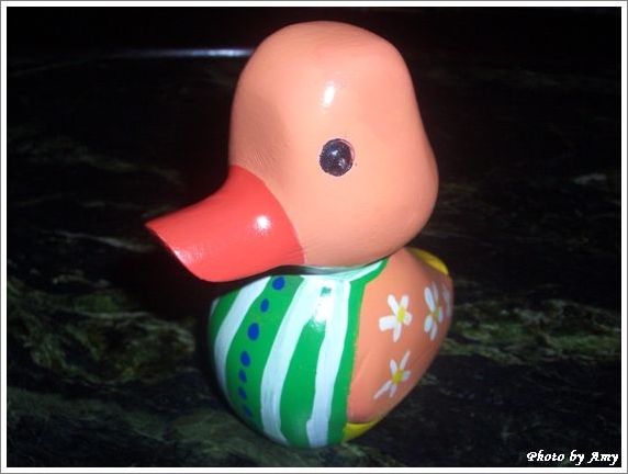 用完午餐,日頭依舊赤炎炎,行前曾在網路上看過一處「一ㄚ箱寶」,彩繪DIY感覺很有趣又可暫時避熱,即延路問人找到所在地,壓箱寶分成展售區與DIY區,偌大彩繪區內假日人較多,我趕緊找彩繪的木製品,原本喜歡小型站立式的鴨子缺貨改選大頭鴨,在彩繪前並無構想也無天份,動手後才知真的難。
