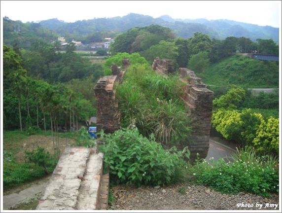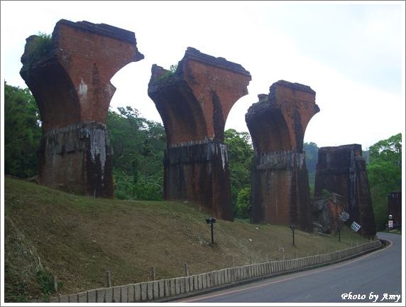 離開勝興車站,繼續騎車前往「龍騰斷橋」,起起伏伏蜿蜒的山路上,未有勝興車站前的人潮,只看見花園造景的民宿及草莓園,若是再往深山裡走應會有更多景點,但因回程搭火車的關係,我與媽媽只能前往龍騰斷橋觀看,來到此處看到紅色斑駁的磚造斷橋遺蹟,再看看一旁解說,原來現有的橋墩遺址,是在民國24年(1935)四月二十一日的關刀山大地震中震毀,民國八十八年九月二十一日再度遭受九二一大地震摧殘震斷,看著被震毀的磚造龍騰斷橋除了深具古樸之美外,也是經歷兩次大地震的見證,而這災害的另一面卻也令人心酸。